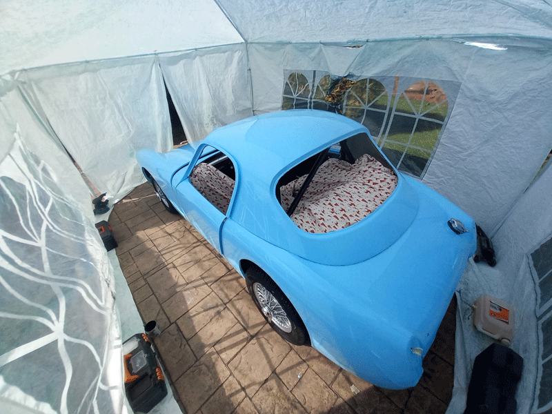 Graham tells me: "I have changed the colour of my Sebring Sprite and wondered if it would be possible to post for me on the Sebring Sprite website. I have hand brush-painted my car from its grey/silver livery to a bright blue livery with a bright yellow bib. This was done under a 3x4m gazebo on my driveway at home between the 1st to the 10th May and completed just in time to enter one of the Shelsley Walsh driving school days on the 13th May. The weather was fantastic as was the whole day on the hill". |