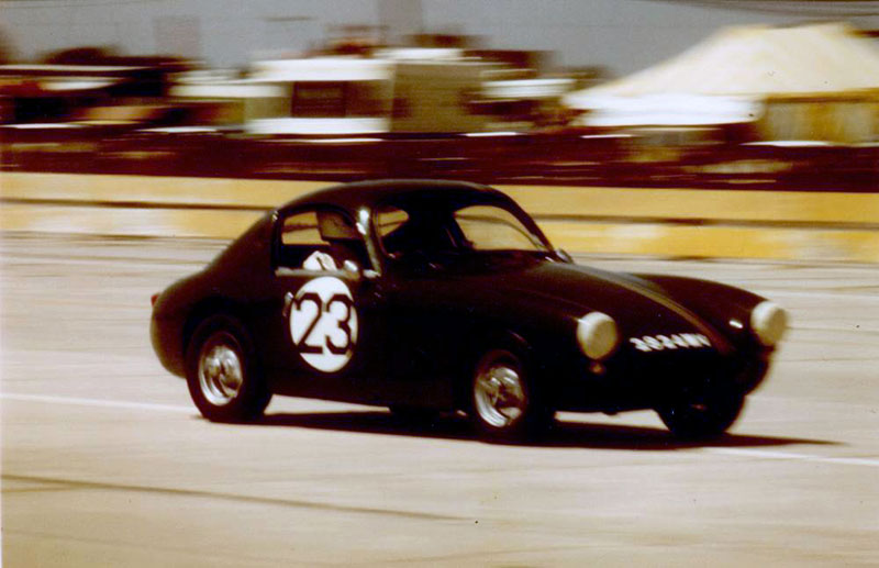 ** It seems there was in fact another owner of the car between 1969 and 1971/2 ~ Colin Cramphorn who says (in Nov.2016): "I am at an age where you tend to think about the past and 2 or 3 weeks ago I thought I would research a car I once owned. It has always had a place in my memories as it was a fantastic car to drive and I sold it to buy an engagement ring. So I typed the registration number 2824 MV and to my surprise pages of information appeared. I always knew the car as a Speedwell Sebring Sprite but I never realised what a rare car it was. At the time I was studying engineering at High Wycombe College and was part of a group with high performance cars such as a Turner Climax and several Morgans. I bought the car in the summer of 1969 and sold it late in 1971 or early 1972. It was dark blue with two silver stripes when I bought it but I sprayed it red in 1970. The engine was a highly tuned 948cc red lined at 9500 and as a road car had a startling performance. Difficult in traffic and would backfire if kept stationary for too long. I had very few problems with the car other than the very tight ground clearance and some rust in the chassis. I cannot remember who I purchased the car from or sold it to but I have found two photographs which include the car. They were taken by my wife to be so the car was not the center of her attention! I will send them to you but they are not really suitable for your site. I would be interested to know how this fits in with your current history and I will be checking to see if I have any further information".