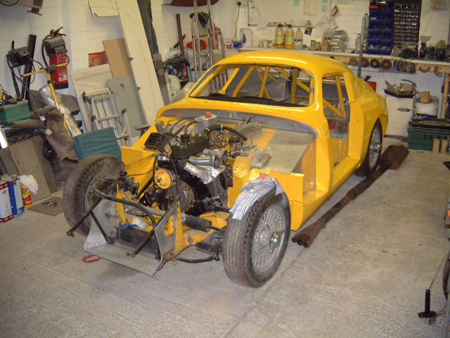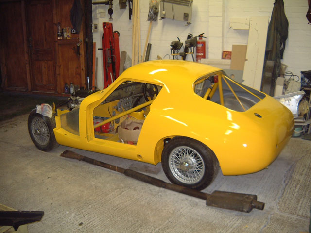 After meeting the famous rally navigator John Brown, Peter was persuaded to enter BXN in the 1961 Gold Leaf Rally in North Wales. Unfortunately during that event a petrol leak in the boot set the car ablaze and almost destroyed it. Early the following year Peter went to work for Douglas Wilson-Spratt and under his guidance the remains of BXN were sent down to Peel Coackworks at Kingston where its beautiful aluminium body was created. Proprietors Alec Goldie and Fred Faulkner operated the business, with Fred having previous experience with AC cars and both men worked at Brooklands for Hawkers during WW2. With design input from Douglas, the car was fitted with a Speedwell 'Monza' bonnet and may be considered the forerunner of the WSM series. Peter continued to race BXN until the engine finally expired and, being short of cash, he sold it to Frank Williams. It then passed into the hands of Adrian Faudington before being sold in June 1972 to Richard Higgins who raced it in HSCC events during the 1970's and 80's, using a 110bhp wet sump Formula Junior 1098cc engine, and he repainted the car in red. He sold BXN to Stuart Radnofsky in 1986, who competed with it in the 1990 Coys Historic race at Silverstone. A serious engine failure shortly after the Coys event prompted him to have Andrew Haywood-Smith carry out a major rebuild. During this work, it was decided to change the colour of the car to yellow. Collector Mick Darcey purchased the car in 1994 and it joined his valuable collection of Healey's and MG's. Mick was generous in allowing the car to race in the UK but rarely found time to drive the car himself. Paul Woolmer and Malcolm Gammons were both given opportunities to drive it, in particular in the FISC Sprite race series of 1995 which Paul won, the 1995 Coys Historic, the WSM Re-Union in 2001 and the 2003 Goodwood Revival. In September 2004 Paul achieved a long term ambition to buy the car, and was rewarded with further invitations to the Goodwood Revival meetings in 2006, and 2010.