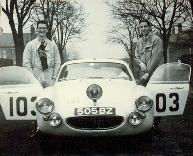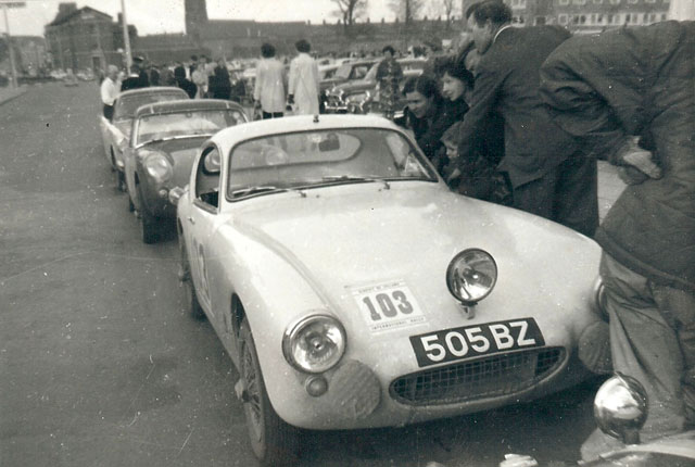 After the final test in Bangor Co. Down. Note Sprite behind, then Sunbeam Alpine