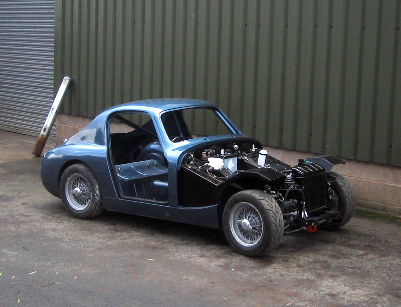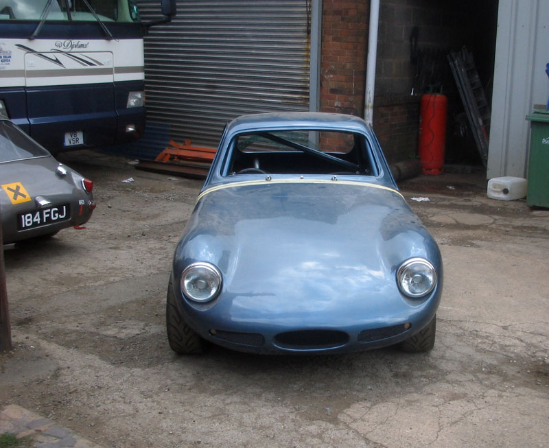 The car during preparation and painting of its bodywork at Archers Garage |