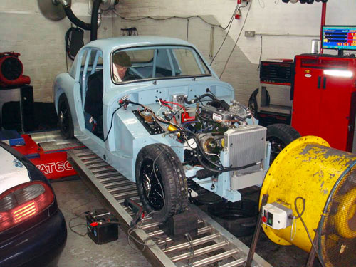 Setting up the motor on the rolling road |