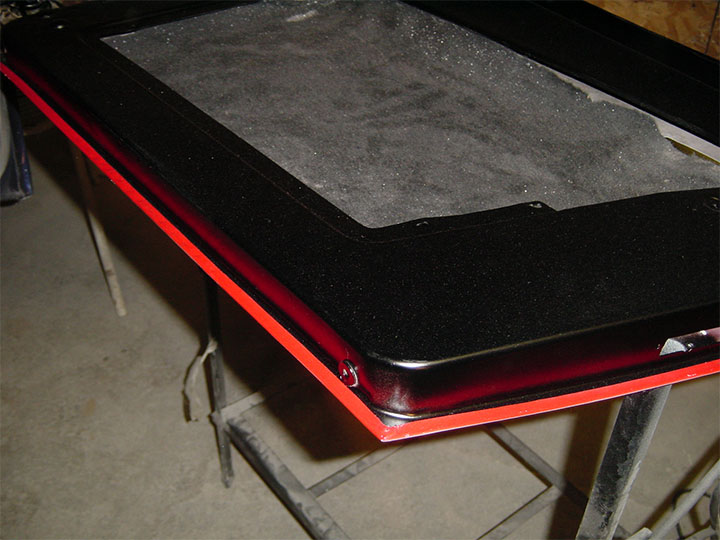 Bare fiberglass and aluminum domes on the bonnet. The top area shows how the fiberglass is braking down on the bonnet.