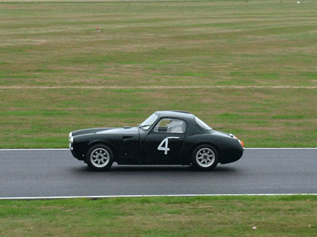 Jack initially ran the car in a few rallies and other modest events before deciding to go club racing. The car began as a standard-bodied Sebring and is pictured in "Spritely Years" fitted with a supercharger. A fibreglass Sebring bonnet was the first major modification, followed later by an alloy hardtop similar to those of Sprinzel's Williams & Pritchard coupés. Unable to afford W & P's prices, Jack obtained front, rear and side screens from Paul Hawkins and trotted off to Peel Coachworks for them to create a similar top. Jack made his own lightweight doors by stripping off the steel outer skins, and cladding them in aluminium. He bent the shape "over his knee" and was naturally proud to show me that the driver's door he made remains on the car today. Later, when funds allowed, Jack went back to Peel's and asked them to make him an alloy rear end. While there he noticed that they had made one for Douglas Wilson-Spratt which incorporated Bentley rear light units, so he asked for his to be fitted with these as well.