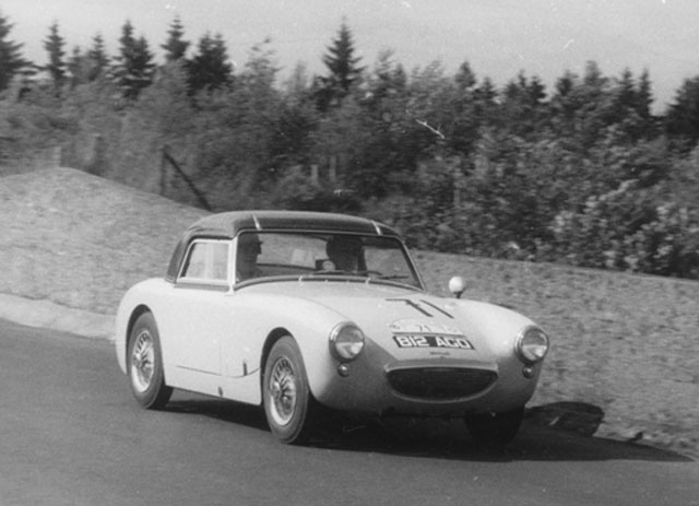 In the middle of his driver career (1954-1972) Frank Kalkuhl, bought, firstly this Sebring Sprite (812 AGO) and later, having campaigned it successfully for a season and a half sold it in the summer of 1963 and bought the W & P car registered D20. He has told Kai that John Sprinzel delivered 812 AGO personally in the spring (Feb or March) of 1961 to Germany. He bought the Sprinzel coupe D20 in the spring of 1964 again with a British number plate.