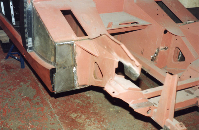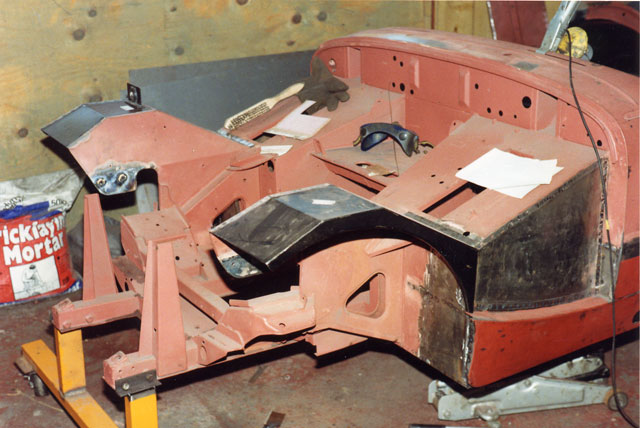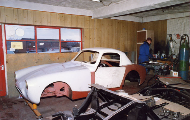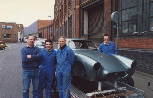 There was a fairly long gestation period while Brian made the necessary moulds from Stephen Bowen's original car, stored in Wheeler and Davies' yard. He had to source various components and get them reproduced locally, with Peter Seaman initially making the replica's side windows, and the pedal boxes for him. It was 1992 before Brian was ready to take in my decrepit bodyshell which had by this time been stripped and sand-blasted. I delivered it to the then Archers Garage premises at Pope Street in Birmingham where the repairs commenced.