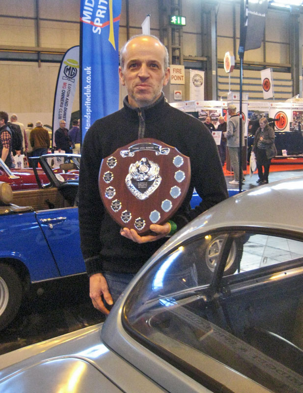 This trophy takes the form of a shield which is presented to the Sebring Sprite considered to be the best turned out and displayed (usually at the November Classic Car Show held at the NEC Birmingham) in that year. The following have received the award since it was created by Ian Ashfield. Ian built his own Sebring Fastback Replica with Brian's help shortly before he sadly died of cancer. We thank Ian's long term girl friend Cynthia Longhurst for her interest in the award.