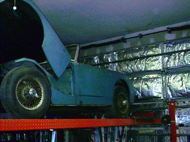 I have AMCO period correct floor rubber in the compartment, while I am trying to have the original flooring reproduced. Just a few more bits needed, original battery (needs to be rebuilt), battery clamp, and the top fastening straps are being made now and she should be ready.