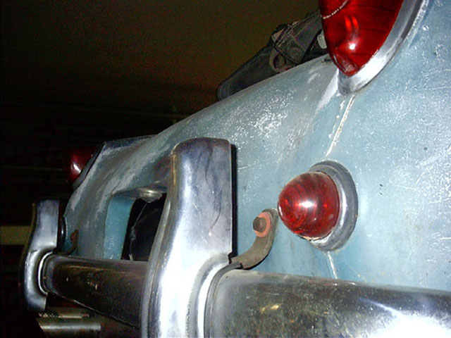 AN5/21583 was built on 24th August 1959 and is, surprisingly, a right-hand drive example with Girling disc front brakes and the usual Sebring twin master cylinders, the experimental twin-pipe exhaust system tried by Healeys on several cars, Healey steering wheel, and a sway bar (anti-roll bar), plus Healey fabric side-screens. It also has the 8" rear brake drums and wire wheels. Jonathan White-house Bird has confirmed that certain details like the compensators fitted to the handbrake activating rods are Sebring ones and therefore original to the car. An unusual feature is an opening in the rear shroud where the registration plate is normally fitted, the inset panel being detachable, though its purpose is unclear - perhaps to allow trapped air to escape through the boot area at speed, or for access, - though not large enough to remove the spare wheel. A small circular lamp inset within the aperture replaces the original number plate light. Another feature is a front bumper fitted to the rear of the car, which has a steel plate bridging the gap between it and the rear body, - Nick thinks this may have been used for a quick-lift jack.