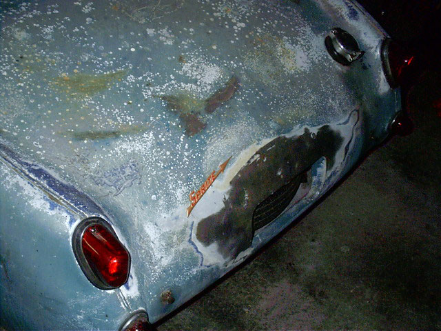 So currently the car is almost completely sorted out, everything fits and works correctly. The next step: disassemble her down to the shell, place her in an electrolysis tank, reseal and paint her OEW and put her back together. I have kept every part that was on her as original, cleaned and boxed up. The bumpers front and rear have been removed and I am going with a new set of bumperettes on the back, the aperture remains. When finished I hope to mirror the Supercharged car that John Sprinzel and Willy Cave drove, with the scoop as it appears in "Spritely Years".