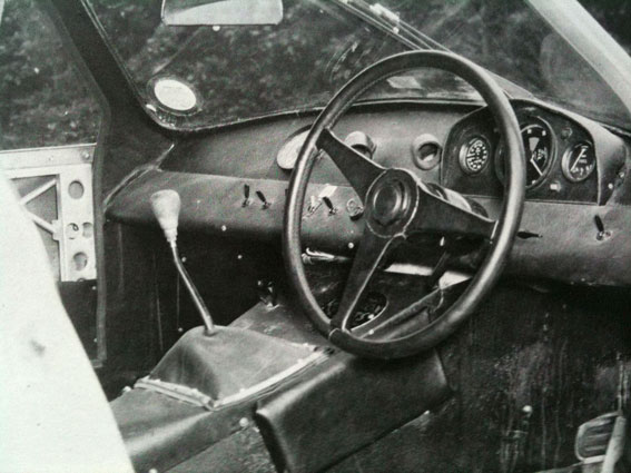 The new aerodynamic design was achieved using research by Austin, and construction by DHMC's Experimental Dept. Geoff Healey was design leader, Roger Menadue performed the fabrication and assembly of the mechanical components and Bill Buckingham constructed the body panels. The windscreen was a cut-down Mini one and side windows and headlight covers were in Perspex. Readily Identified as the first of these cars by its smaller inner headlights. The interior has two form-fitting fibreglass bucket seats, trimmed in black simulated leather and the driver has a 5-point racing harness. It has a small fire extinguisher, and all the wiring is internal. The instrument binnacle puts the instruments in front of the driver in addition to which there is a central control housing the various switches for fuel pumps, lights, etc. The specification is as follows: The engine is a 1293cc XSP with a 45 DCOE Weber carburettor, producing 105 bhp @7,200 rpm, coupled to a 4-speed close ratio gearbox. The Sprite chassis monocoque is in Birmabright with a steel roll cage and an all-aluminium 2-seater coupé body. The rear axle was fitted with a 4.2:1 ZF limited slip diff, and the semi-elliptic rear suspension had a Panhard rod and adjustable shock absorbers. Brakes are 8.25 discs at the front and 8 X 1.25" drums at the rear. The special wheels in cast Magnesium were 13" x 5.5" to take 5.00 Dunlop CR65 tyres. The weight was 1322 lbs. Gary says that the car has been clocked at 156 mph. It was shipped back to the UK in the early 80's and restored by Geoff and Donald Healey to bring it back to its original condition and specification.