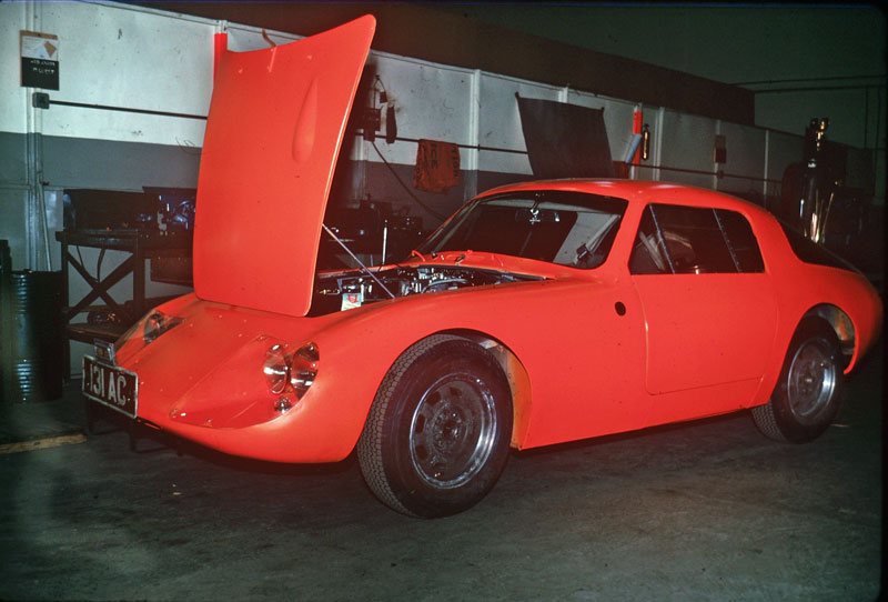 For 1965 the Donald Healey Motor Company developed this new wind-tunnel developed aluminium coupé, the first of ten to be built over the next four or five years. Its first outing was in the 1965 Sebring 12 Hour Race alongside the previous year's car, 770 KNX. The drivers were Clive Baker and Rauno Aaltonen, who were to finish 15th overall. They would have also won their class but Classes 7 to 10 in the GTP category were amalgamated so that award went to the Mitter/Linge Porsche 908.