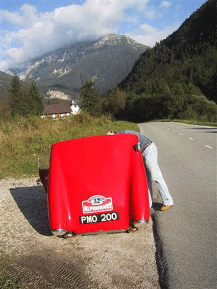 Martin encountered big family problems when he bought the car back in 2004. He had gone with a friend to view a Porsche 911 which his friend was thinking of buying from a restorer by the name of Armin Eigelsreiter. They were shown around his workshops where Martin first set eyes on the red PMO. He says that for two reasons he really didn't want to buy a car: firstly historic cars are a subject to be avoided at home. His wife had issued an order "Sell some cars but under no circumstances buy any more". Secondly he already had in his garage a Healey Silverstone which he drives every year in the Ennstal Classic, one of the most popular events for historic cars in Austria. The restorer explained that he had agreed a sale of the car but, despite paying a deposit, the buyer had not paid the balance. He urgently needed to sell the car. Martin drove home a little depressed "Such a car, but such a restriction!". He called Mr Eigelsreiter and says maybe he would buy the car. Two weeks later, on a Saturday morning he got up early and prepared a fine breakfast for his wife. Half an hour later she was convinced that this car is a necessity for the family garage! So, early that afternoon, the family of Martin and his wife and two children went off to buy the Sebring. Martin told the family that he would sell his Porsche 356 but now he had a problem with his daughter, Anna. She told him he could not sell the car because he gave it to her when she was 4 years old. The next problem was Max who recalled that I gave him the Mercedes 230SL when he was 3! However thanks to his wife he got his "Absolution". Now, he says, he has to work harder to give much more time to his family.