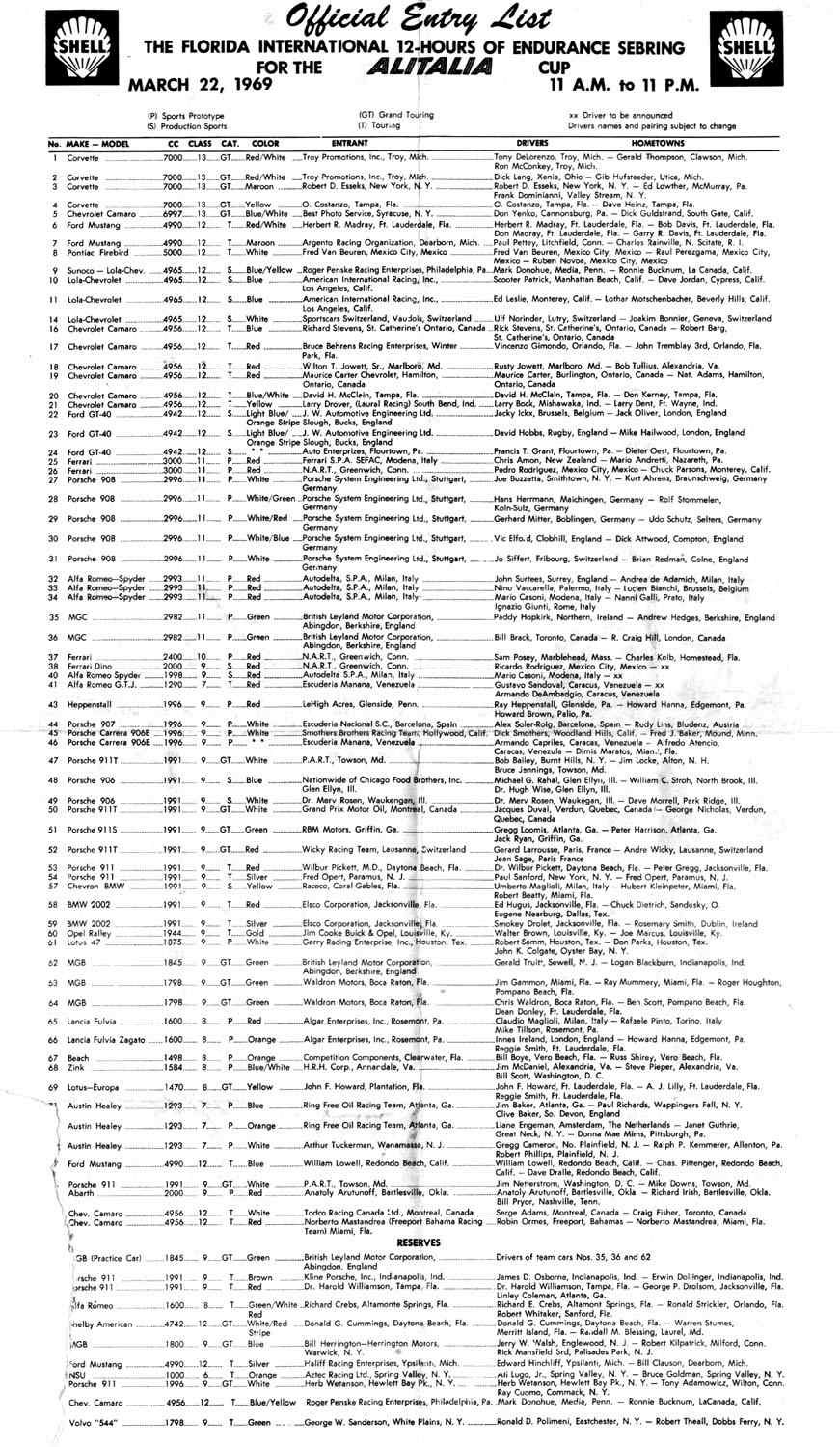 This is the start of the car's first major event, Sebring 1969, where it was driven by Jim Baker, Clive Baker and Paul Richards |