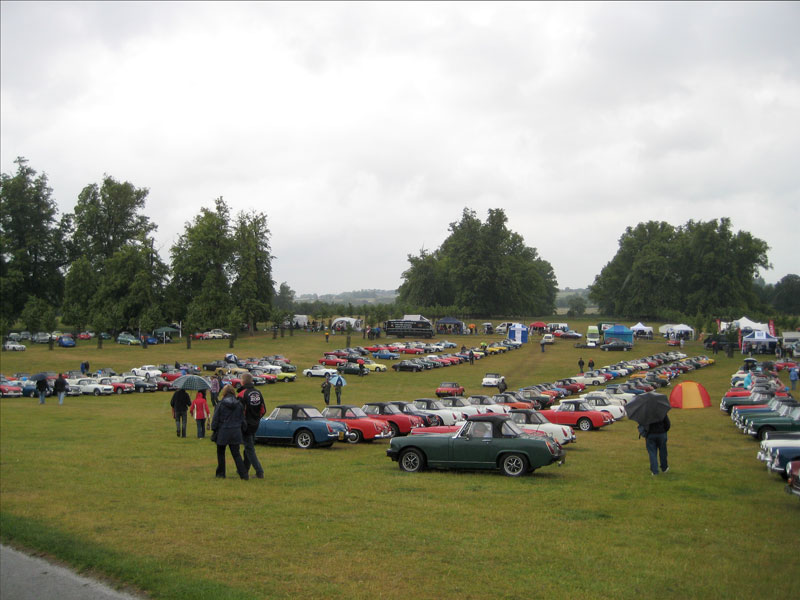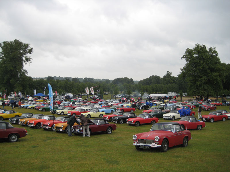 Meanwhile the hoards of Midgets and Sprites were lining up across the field and trade stands had been set up including one for each of the organising clubs. A line-up of Midgets from 'M' Types, through 'T' Types and all the Marks of post-war Midget, was placed in front of the main house. A brass band was playing and bacon sandwiches and coffee were being consumed.