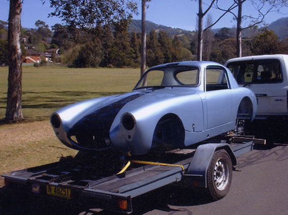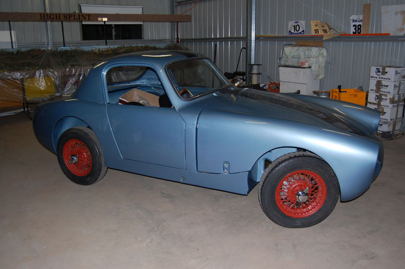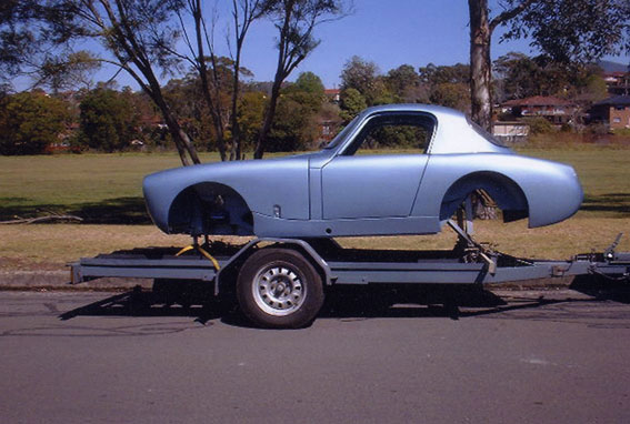 "The story really starts in February 1995, when my wife Dianne and I were returning home from a two-week holiday, - we had been touring Tasmania in our Bugeye Sprite along with a group of AHOC (Sydney) big Healey owners. When we got off the ferry in Melbourne we decided to stay a few days to have a look at some Mk 1 Sprites that Tony Pickard of Pickard's of Melbourne had for sale, the idea being to find a car that I could restore for racing, rallying, hillclimbing, etc. It was at their premises that we met Tony Bennetto, who invited us to visit his house in the nearby Dandenong Ranges. Tony then contacted Ray English who lived further up in the hills and organised a visit to look at his Sprite memorabilia collection. I was impressed with both the original Sprinzel Sebring of the 1960s and the Archers Garage replica brochures that Ray showed me, and I thought about how great it would be to own one of these very pretty coupés. Since that day Ray has given me a lot of valuable information on both the original cars as well as the replicas, whenever I have asked.