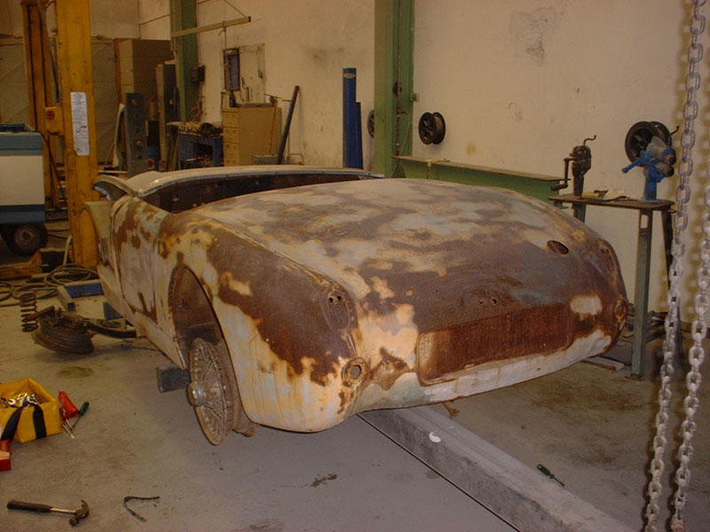 We visited the UK in 1997, where we had the pleasure of meeting up with Brian Archer of Archers Garage where these replica Sebring kits are made. As we were shown around the workshop I was becoming keener by the minute, and decided I wanted to build one of these cars. On our return to Oz I looked around for a donor car and, not long after, found one that filled the bill, so it was purchased and stowed away for the future project.