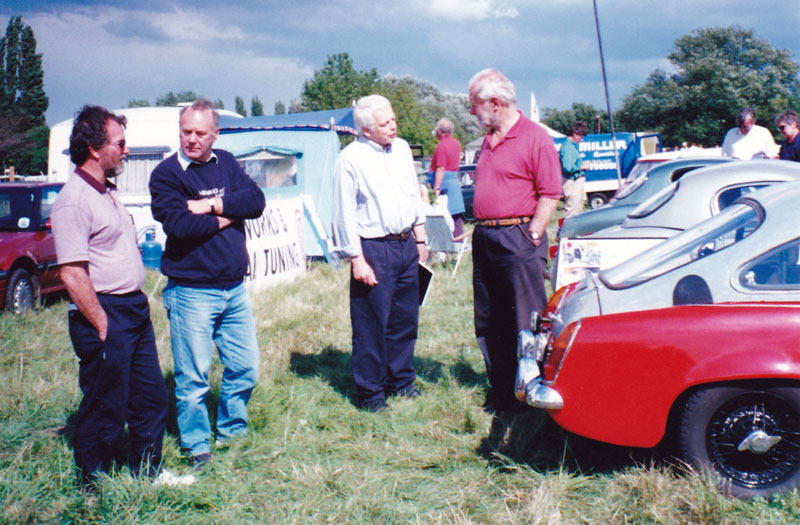 Some interesting 'old' photos kindly sent in by Neil Blaney show (left to right) his wife Dianne with Brian Archer and the K Series Sebring at Pope Street, JJO, S221 and Neil, Brian, Tom Coulthard and Jack Wheeler at the Abingdon Works Day in 2000.