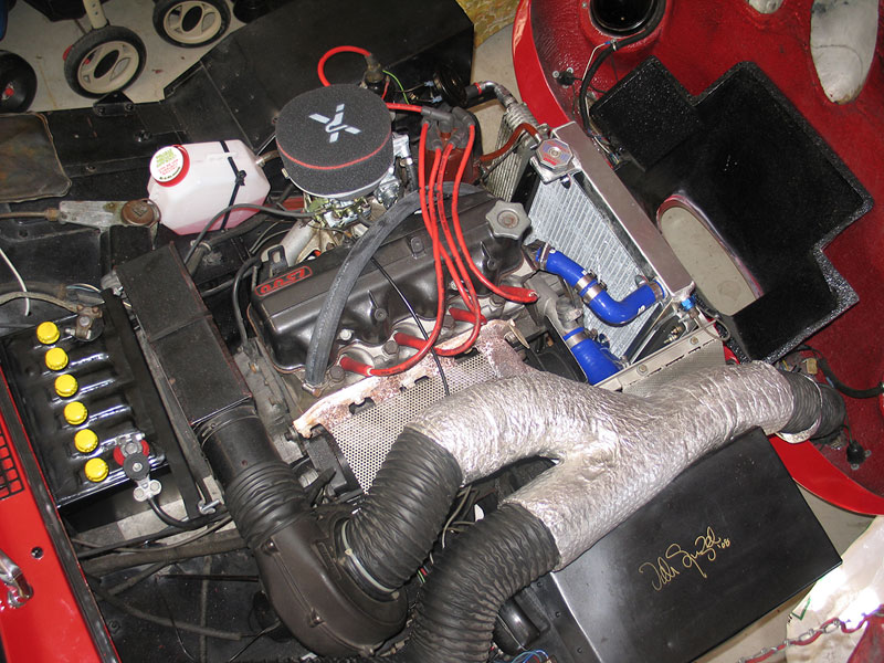 'I purchased the Lenham GTO that Colin Dodds co-owned in the article "AN AUSSIE GTO with round wheel arches". So says David Laing who has since written an article for 'Sprite Torque', magazine of of the Sprite Car Club of Australia of which he is Promotions Officer. Since buying the car earlier this year he has fitted a set of 14" x 41/2" crome wire wheels. He has also ' been doing some "maintenance" work to bring it up to my standards viz. fitted new rear wheel brake cylinders, shoes, handbrake boots and rear axle seals etc. new front rotors, disc pads and tie rod ends. The steering has quite a bit of free-play so adjustments will be made and hopefully I don't have to strip it down and rebuild it. I'm intending to fit a roll bar too, that will incorporate seat belt anchor plates. I have also had the extractors "cerakoted" and a new exhaust fitted that ends with a twin pipe outlet in stainless steel. I have also fitted chrome ring surrounds around the "Ferrari" type Hella tail/stop/indicator lights, as well as a GTO badge fitted lower right rear panel'. |