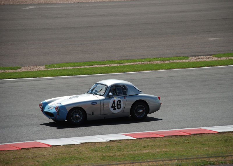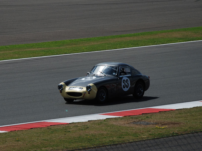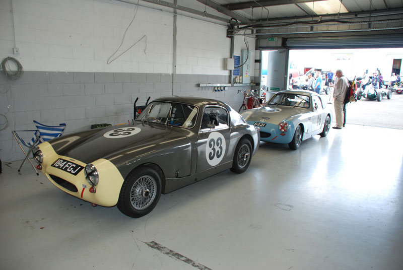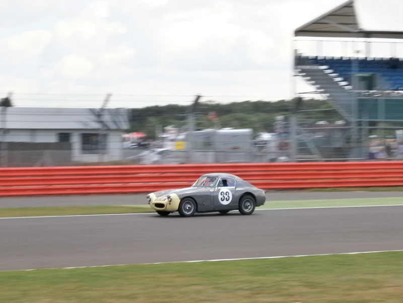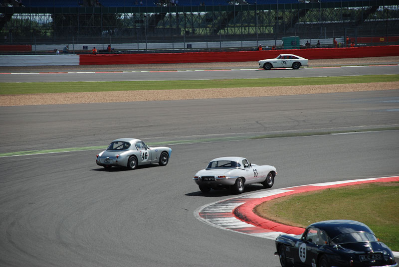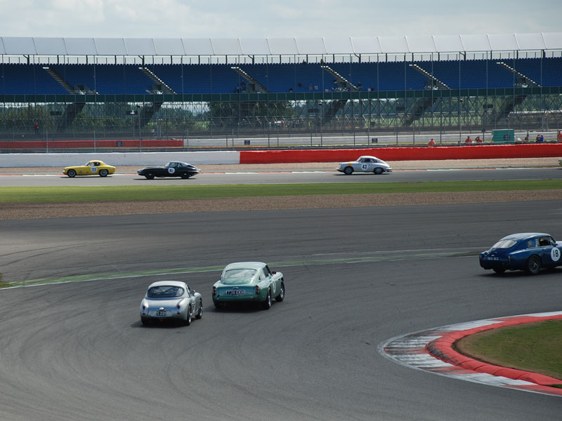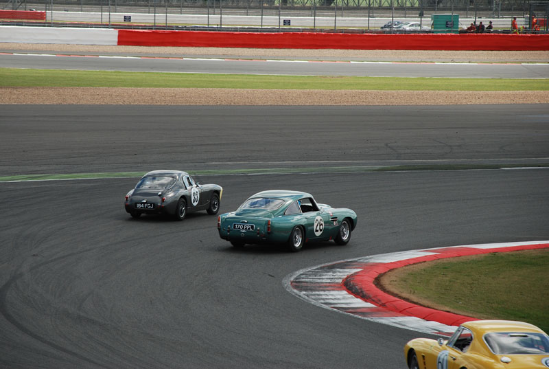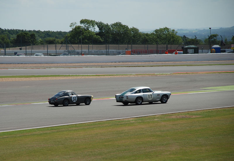 By Sunday morning the electrical storm had blown over, and the sun was back out though it was cooler with a stiff breeze. Having practiced on Friday the two race Sebrings S221 and 184 FGJ were preparing for the RAC Tourist Trophy for Historic pre-'63 GT cars. They were up against a big field of Astons, Lotus Elites, 'E' types, Porsche 356s, Ferraris, etc. Charlie Clegg started in FGJ and had a terrific dice, first with a 356 which he eventually passed, and later he got by a Healey 3000 and a Ferrari before coming in to hand over to his sister, India, who very competently rounded off the race. Martin McGlone started in S221, before Chris took over, dicing with an E type which tapped his rear wing at Village making a small dent in the aluminium. Results will follow.