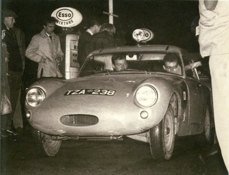 Poole and John Bilton on the Donald Healey Rally in 1962, with Speedwell Monza bonnet